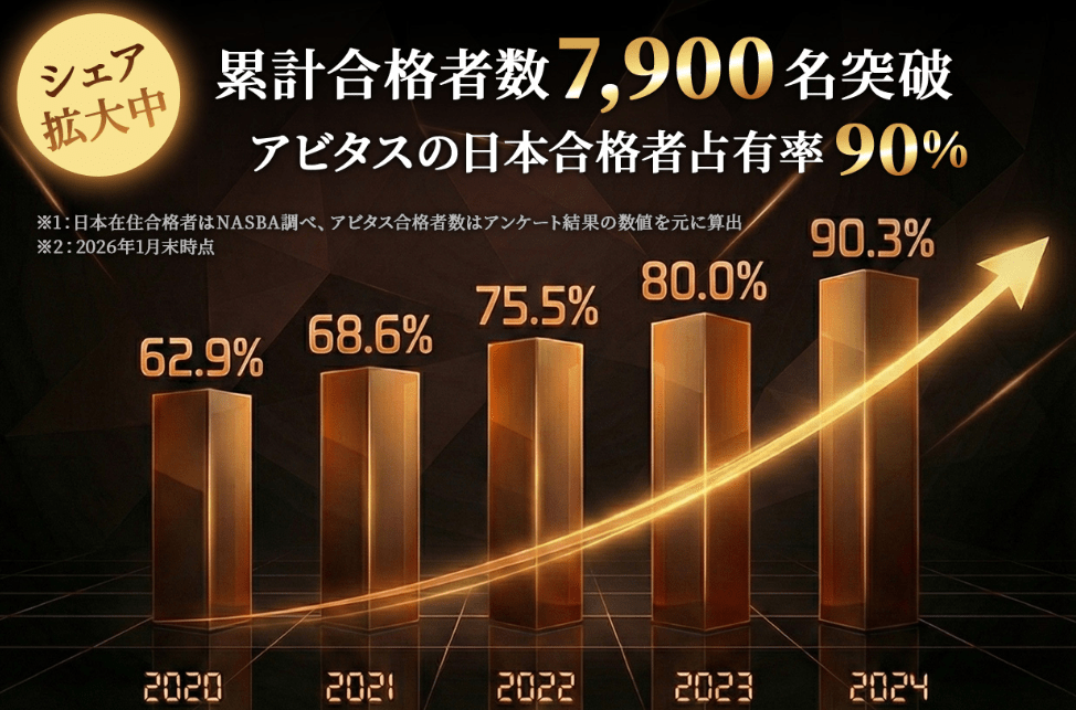Abitus(アビタス)のUSCPA講座は、日本のUSCPA合格者の約90%が活用している実績を誇る通信講座です。