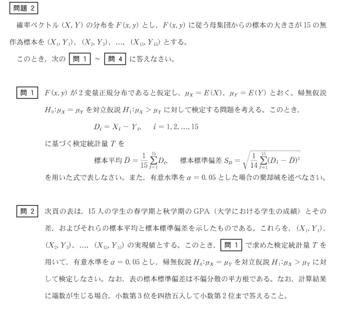 こちらの問題も統計学で実際に令和5年に出題されていた問題です。こちらは確率を計算する問題となります。高校1年生で習うレベルの問題であるため、公認会計士を目指すどの受験生も、勉強をすれば習得可能なレベルとなっています。