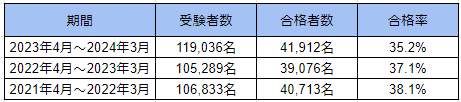 上記の表を見てみると簿記3級の合格率はおよそ30%〜40%ということが分かります。簿記3級は、簿記の試験の中で1番簡単な問題が出るため、簿記の初心者が多く受けるテストです。そんな中でこの合格率ということは、十分合格を目指せる試験ではないでしょうか。